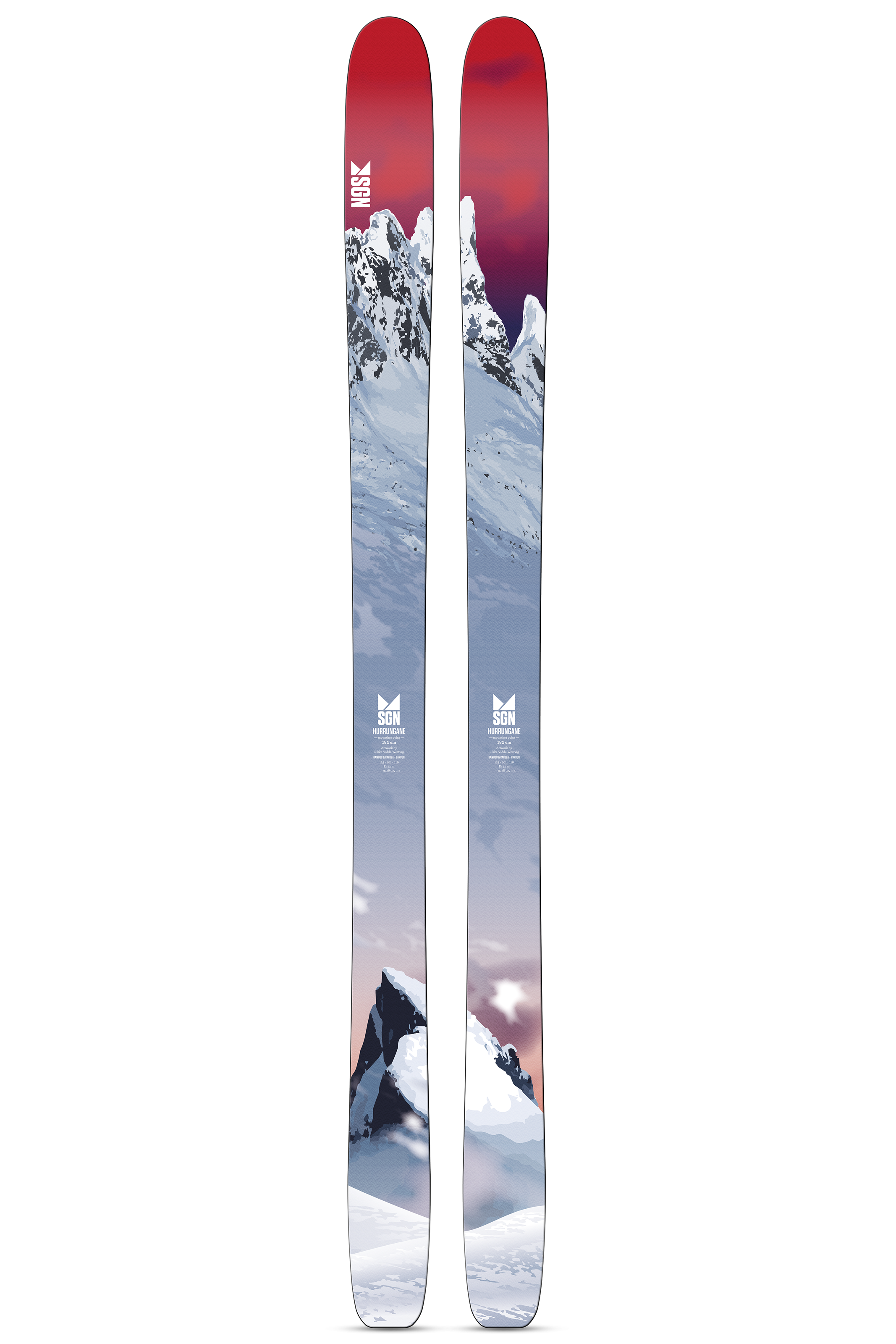 SGN Hurrungane er toppturskien for deg som vil ha et lett, presist og slitesterkt verktøy til lange dager i fjellet. Inspirert av de dramatiske tindene i Hurrungane, kombinerer denne skien rå funksjonalitet med unik norsk design.