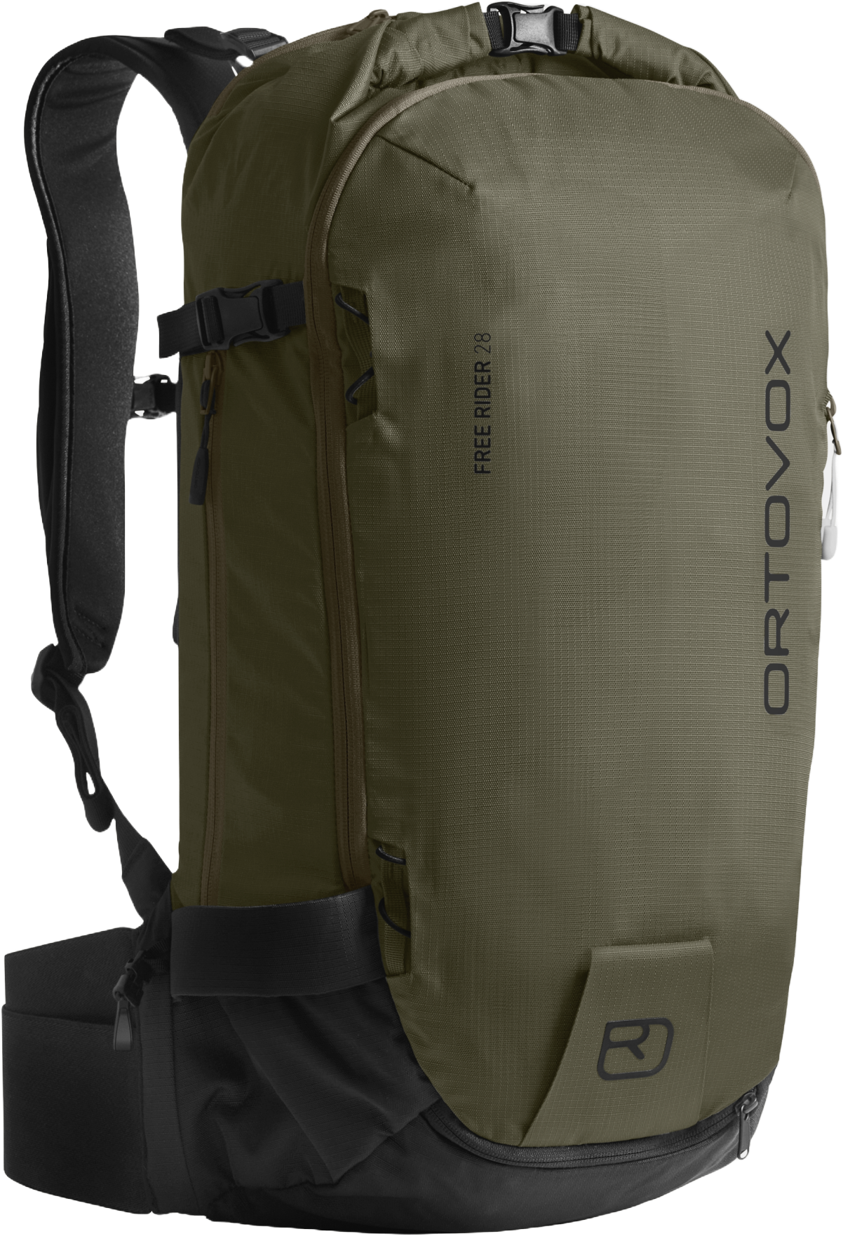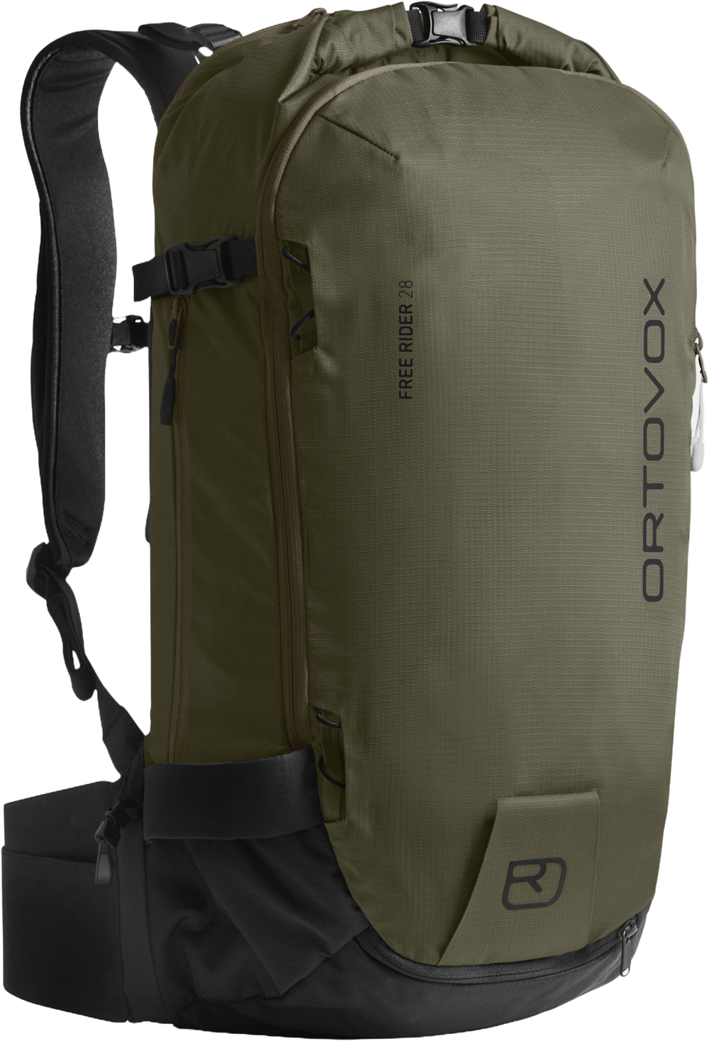 Ortovox Free Rider 28 er en allsidig freeride-sekk som kombinerer komfort, sikkerhet og funksjonalitet. Den sitter tett inntil ryggen med CLASP FLEX BELT hoftebelte og myke ryggpads som gir stabilitet uten å begrense bevegelser. For ekstra beskyttelse kan sekken oppgraderes med CLASP SPINE PROTECTOR (selges separat), en ryggbeskytter sertifisert etter motorsykkelstandard, som enkelt glir inn i en egen lomme.