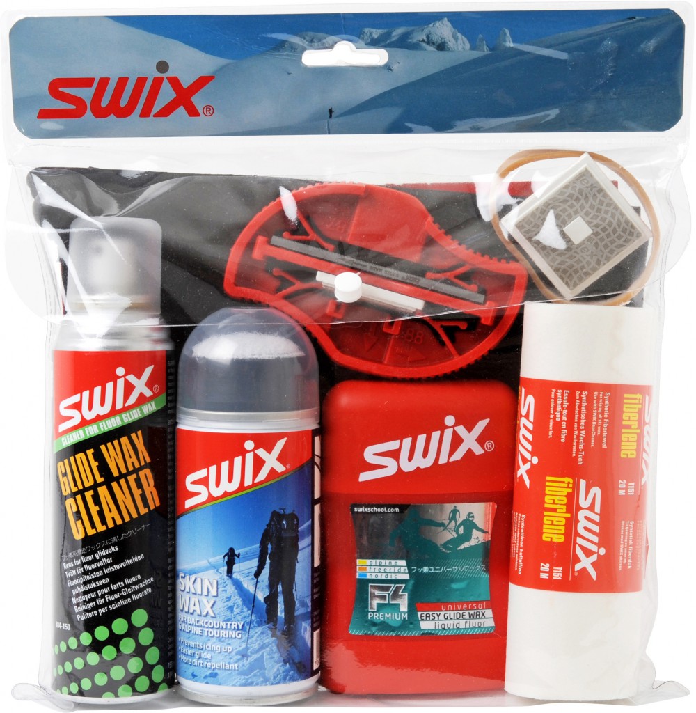 Innholder: F4 flytende glider med applikator, Skin Wax med applikator, filholderset med fil, grovt bryne og diamantbryne for kantsliping, Glide Wax Cleaner, Fiberlene papir og nylon pose for oppbevaring.