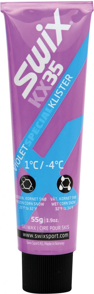 +1°C til -4°C. Særlig egnet på grovkornet snø når lufttemperaturen går fra minus til pluss. Brukes også som mellomlag over KX20 eller KB20, før eventuelt våtsnøklister legges som topplag.Anbefaler eget smørejern for pålegging av klister. Plastskrape medfølger.